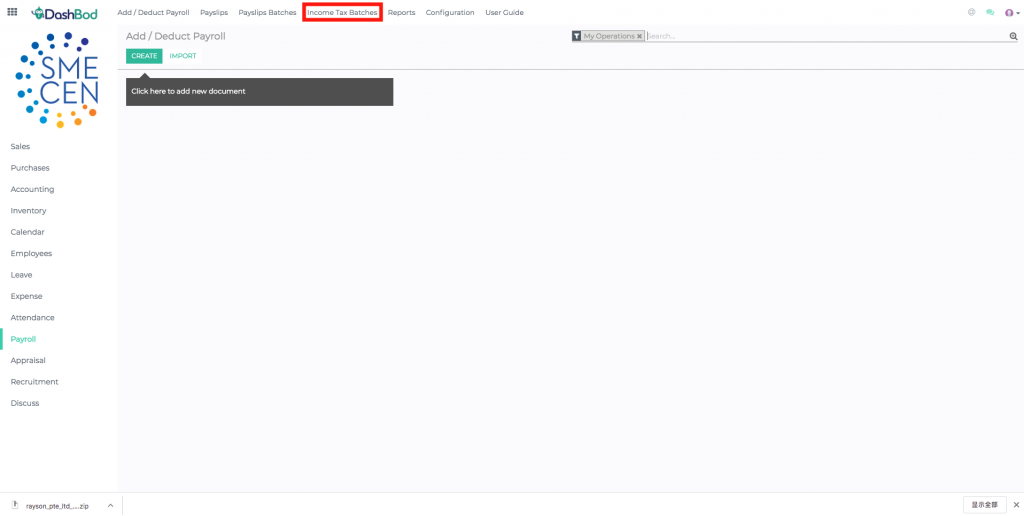 - HR – Payroll Module. On the top bar, Select Income Tax Batches